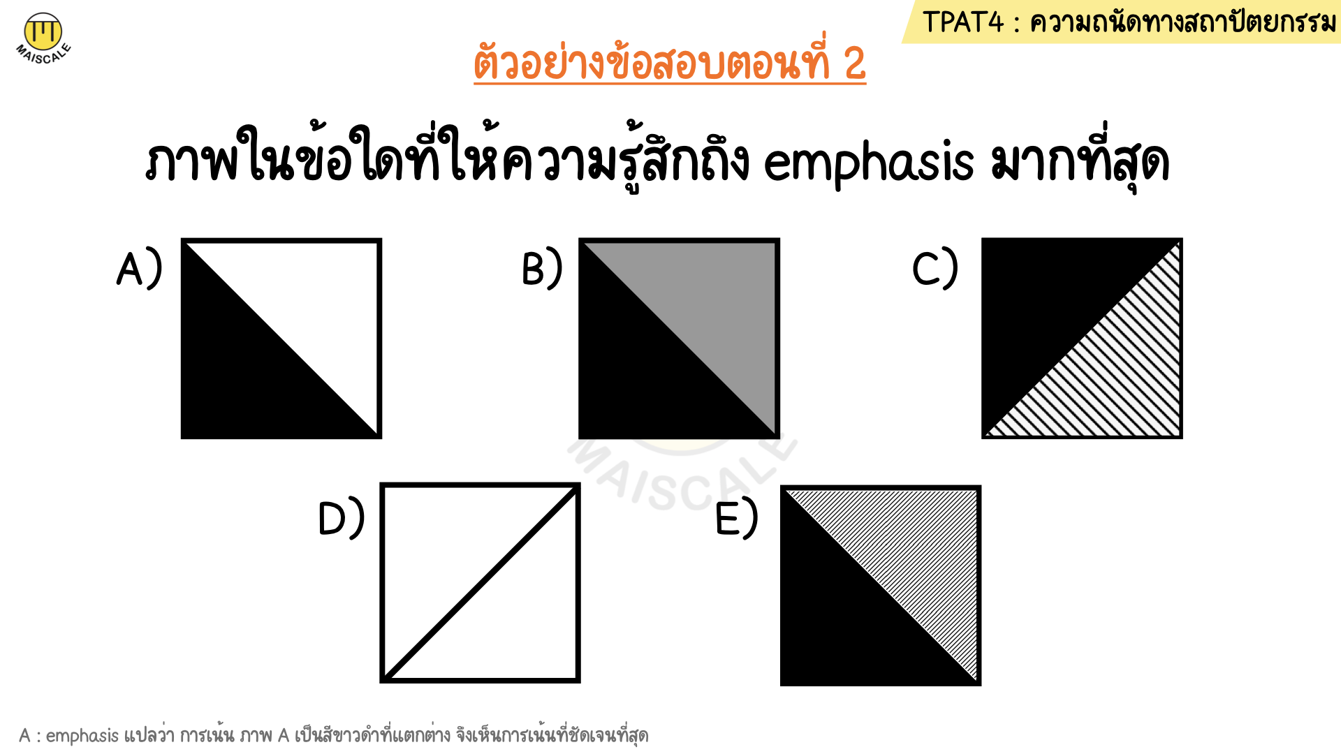 เนื้อหา ในวิชา TPAT4 ความถนัดทางสถาปัตยกรรม เน้นทฤษฎีความรู้ทางสถาปัตยกรรม การคิดวิเคราะห์และนำไปใช้
